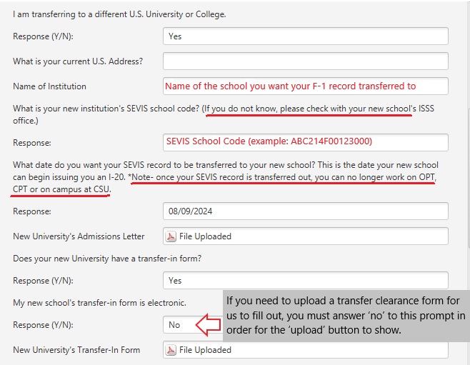 *For Those transferring out of CSU (transfer out / SEVIS Transfer)